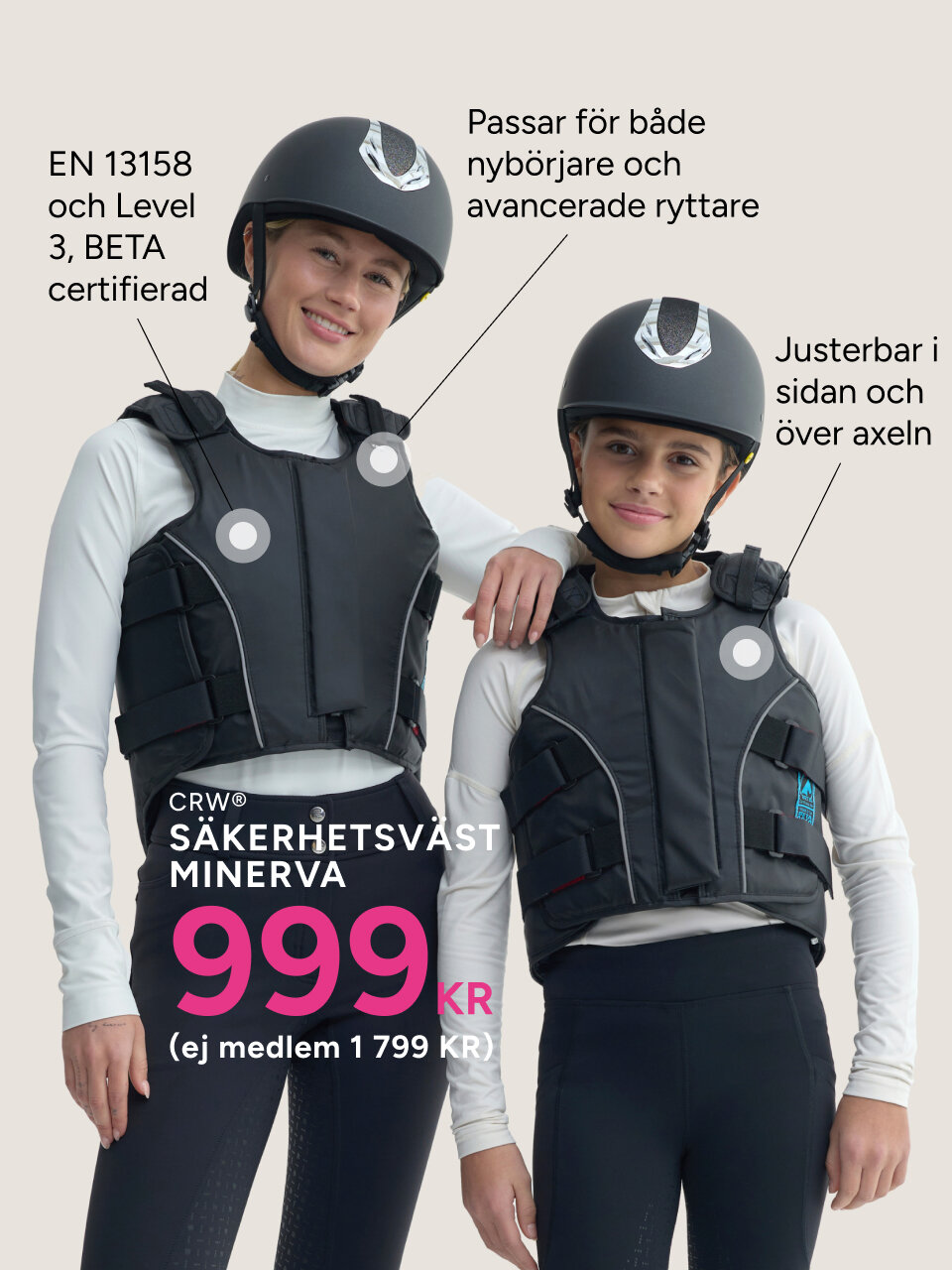 Rätt skydd gör skillnad. Våra guider hjälper dig att välja ridhjälm och säkerhetsväst för säker ridning.