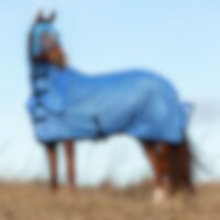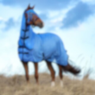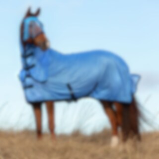 Flugtäcke i finmaskigt polyesternät. Nylonfoder längs mankam och fram i bogen för att minska risken för skav. Fast hals med kardborreknäppning + resårfäste för grimman. Dubbel knäppning framtill och dubbla kryssgjordar. Ny kvalitet på kardborre som inte rikserar att förstöra mesh-tyget. Stort svanskydd och svansrem.