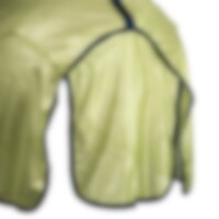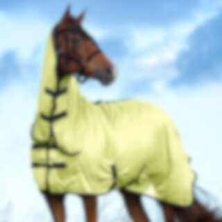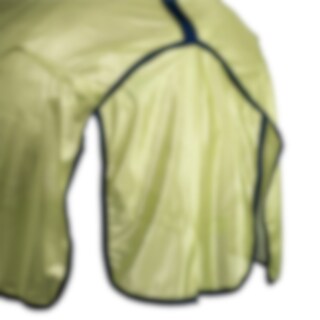 Flugtäcke i finmaskigt polyesternät. Nylonfoder längs mankam och fram i bogen för att minska risken för skav. Fast hals med kardborreknäppning + resårfäste för grimman. Dubbel knäppning framtill och dubbla kryssgjordar. Ny kvalitet på kardborre som inte rikserar att förstöra mesh-tyget. Stort svanskydd och svansrem.