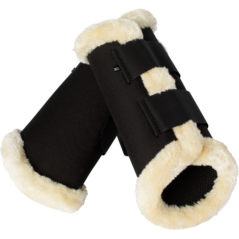Lätta smidiga damasker med utsida i tålig, slitstark 840D Cordurapolyester, innerfoder i tjock polyester 3D mesh som verkar stötupptagande och låter huden andas. Mjuk 3D polyester mesh närmast hästens ben som bildar luftspalt vilket motverkar överhettning och skav. Kantade med artificiellt fårskinn i polyester vilket förhindrar att grus och smuts kryper in under skydden. Knäppes med kraftig kardborre. Lätta att tvätta i 30grader i maskin.