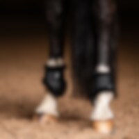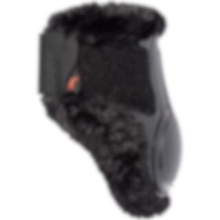 Kotskydd i slagtålig plast fodrade med perforerad neopren som släpper igenom luft och värme. Insidan i 3D polyester mesh hjälper till att hålla en behaglig temperatur och transporterar bort överskottsvärme. Ventilationshål i skålen tillåter överskottsvärme att släppas ut. Formskuren skål med utskärning som låter skålen forma sig bättre runt kotan. Knäppning med kardborre. Kantband i syntetiskt fårskinn i 100% polyester hjälper till att förhindra att det kryper in smuts och grus under skydden.
