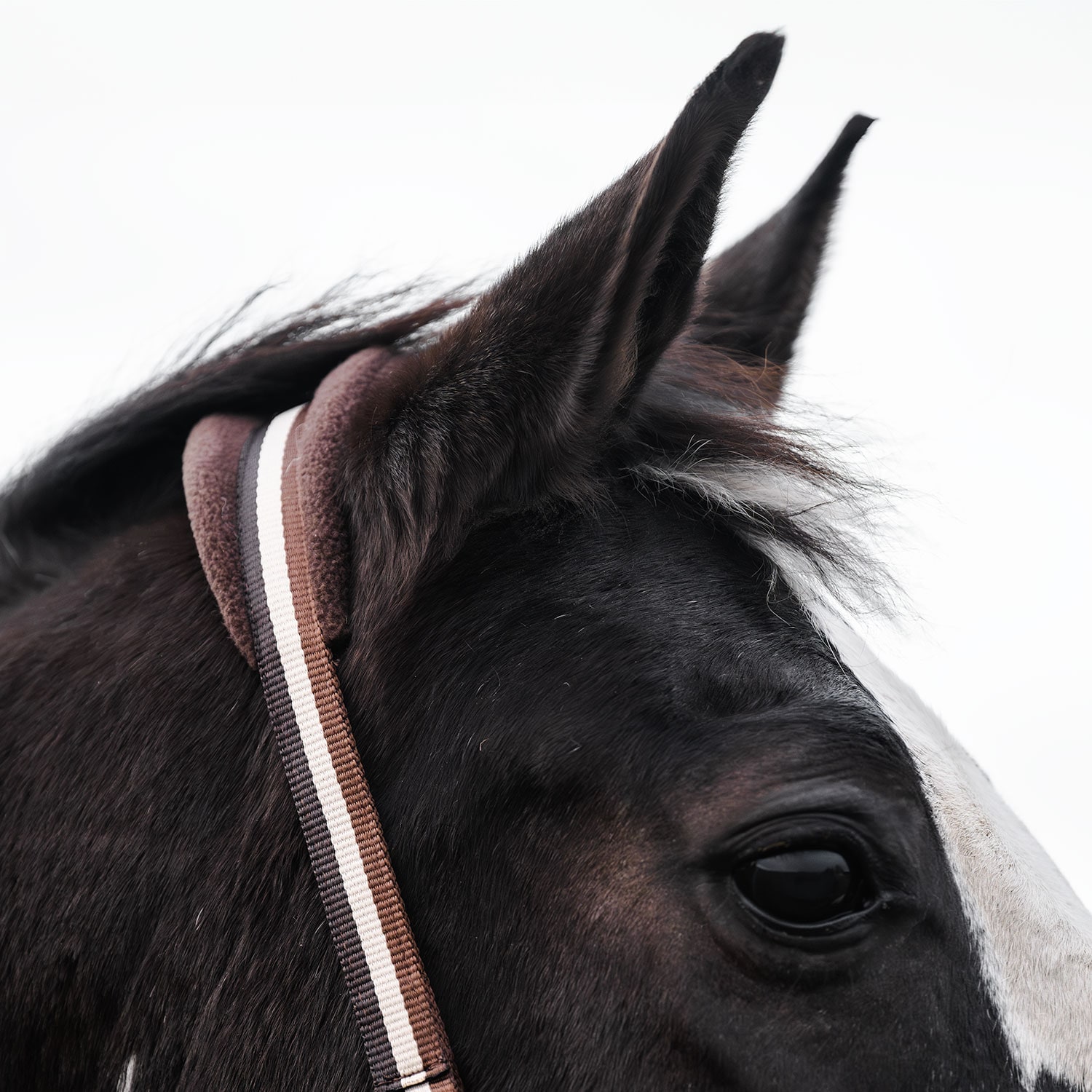 Grimma med mjuk, bred formad fleece vid nos och nacke. Ställbar i nos och nacke. Silverfärgade spännen.