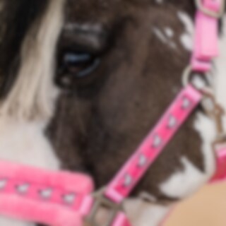 Grimma fodrad med mjuk minkfleece i nos och nacke. Dekorband med hästar.