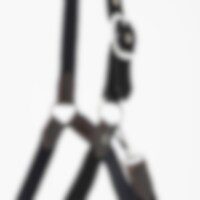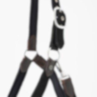 Grimma med läderdetaljer. Helfodrad med mjuk neopren. Något stretchig i nacke och nos. Matta silverfägade spännen.