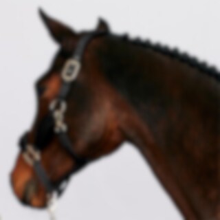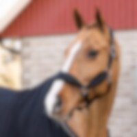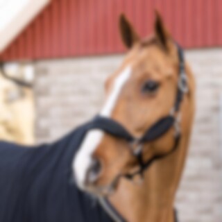 Grimma med mjukt stoppad sammet vid nacke, nos och sidostycken. Ställbar på båda sidor av nacken.