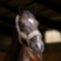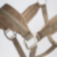 Grimma med mjukt stoppad sammet vid nacke, nos och sidostycken. Ställbar på båda sidor av nacken.