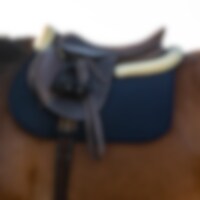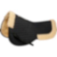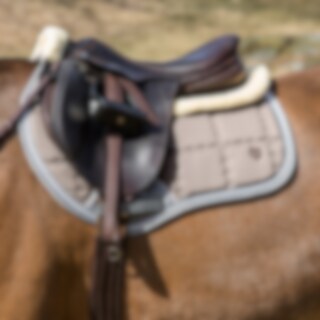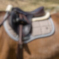Pad med ovansida i quiltad, stadig bomull och med undersida i tät teddyfleece. Stroppar med kardborre för fastsättning i sadeln.