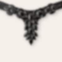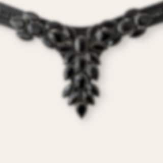 V-format pannband med små vita stenar och stor dekoration i mitten.