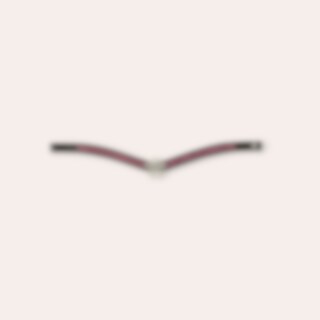 Svängt pannband dekorerat med vita stenar, stor blomma i mitten. Tänk på att pannbandet kan vara vasst och ömtåligt.