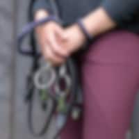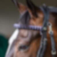 Klassiskt rakt pannband i läder dekorerat med flätatde sammetsband.