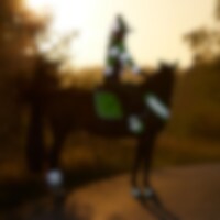 Benreflexer i fluorescerande 420D polyester samt två 3M reflexer. Lätt vadderade med insida i nylon. Lätta att torka av och tvätta. Passar ovanpå benskydd. Knäppes med tre kardborreremmar.