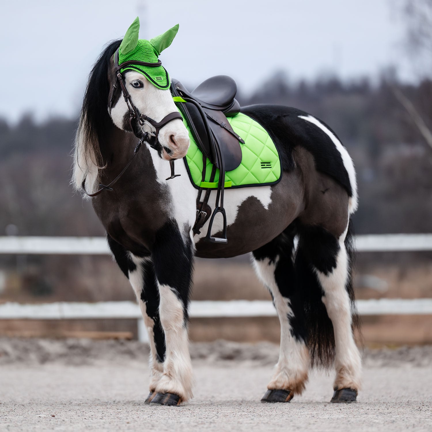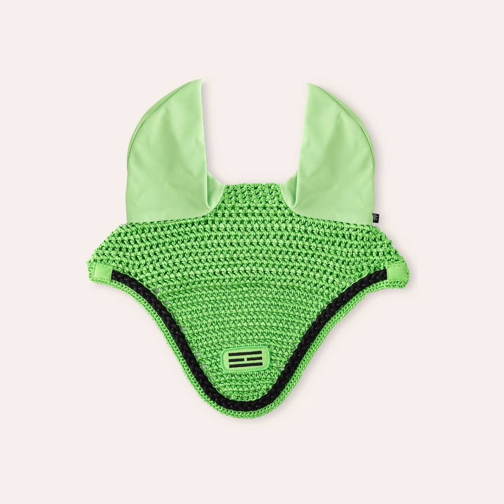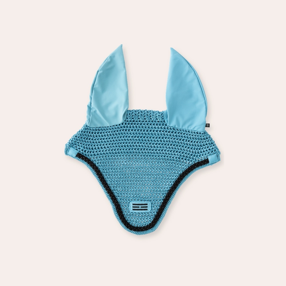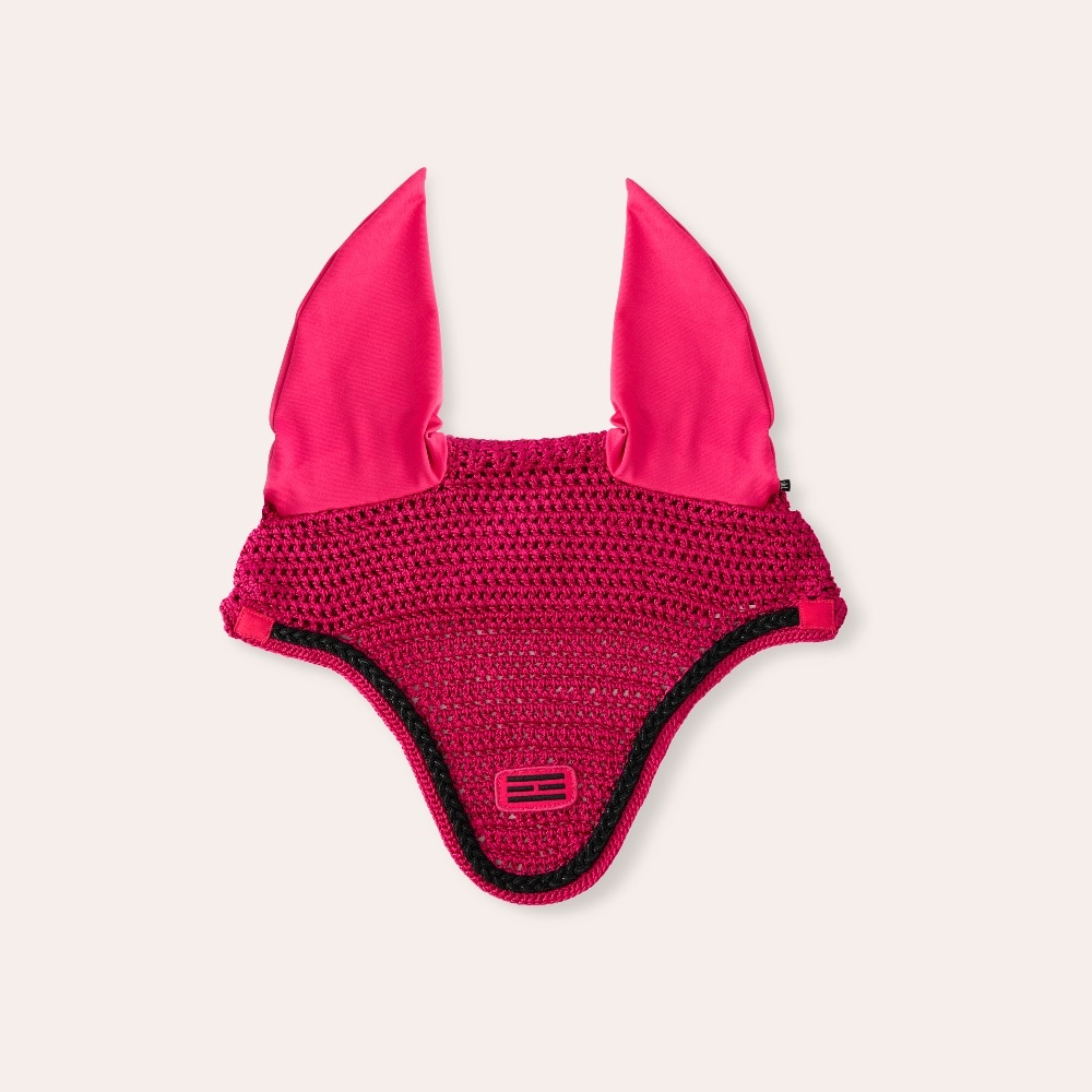 Virkad huva i nylongarn med lyster. Elastiska öron för god passform. Hål för käkrem gör att huvan sitter stadigt på plats. Broderad Fairfield logo i lurextråd och flätad lurexpasspoal.