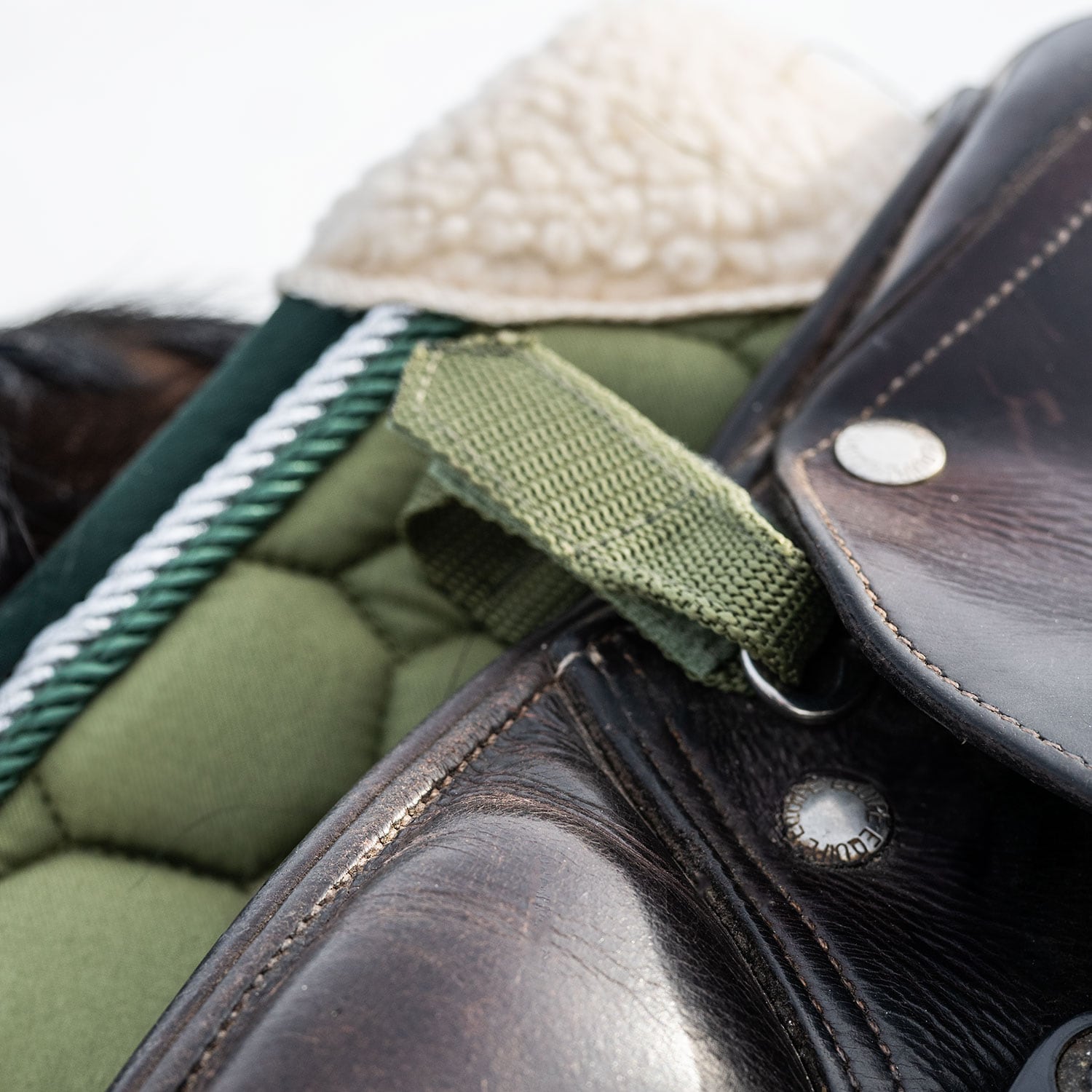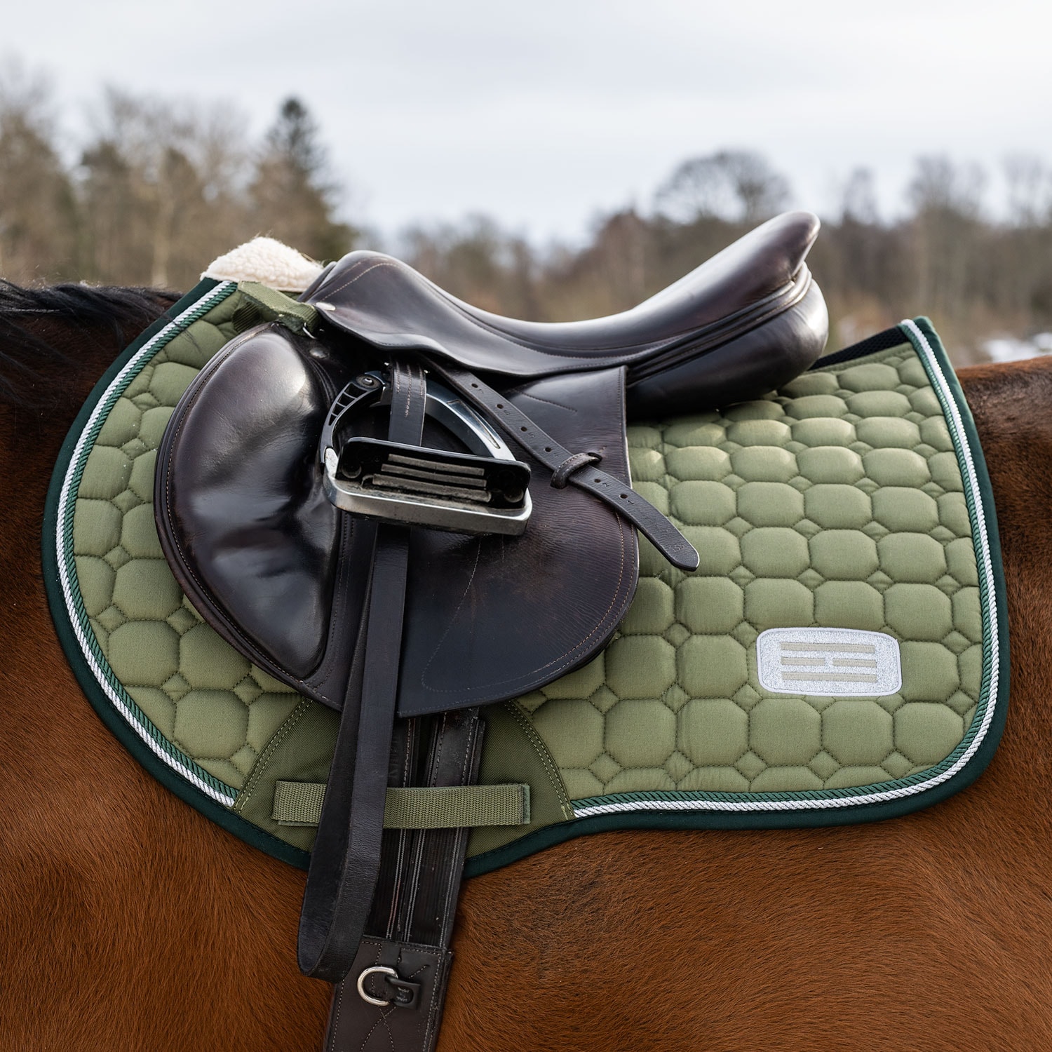 Quiltat schabrak med utsida i siltstark bomullstwill, kraftig kombinations padding i 300g polyfill + 1cm foam ger ett stadigt schabrak som håller formen och ligger på plats, insida i 100% polyester funktions material som hjälper till att transportera bort