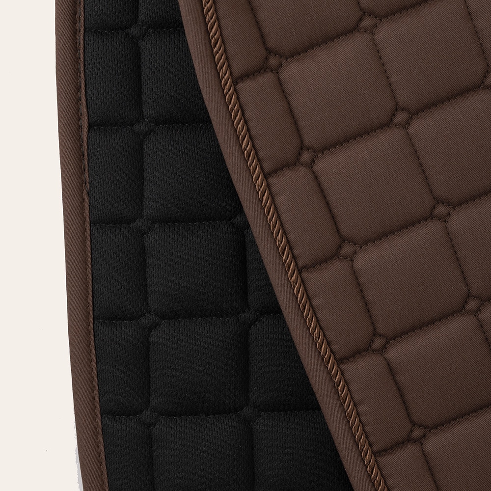 Quiltat schabrak med kombinationspadding i 300 g polyfill + 0,8 cm foam som ger ett stadigt schabrak som håller formen och ligger på plats. Insida i Coolmax funktionsmaterial andas och hjälper till transportera bort fukt ifrån hästen.
