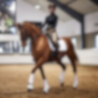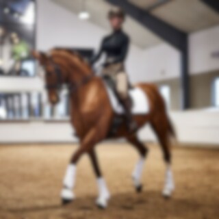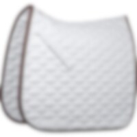 Quiltat bomullsschabrak med dekorativ ytterkant i brunt fuskskinn. Insida i vit Coolmax funktionsmaterial som hjälper till att transportera bort fukt. Stadig kombinationspadding gör att schabraket håller formen. Broderad Fairfield-logga på manken.