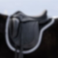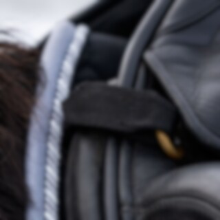 Quiltad bomullsvojlock med stadig kombinationspadding i 300 g polyfelt + 0,8cm foam. Insida i 100% polyester funktionsmaterial som hjälper till att transportera bort fukt ifrån hästen. Korta stroppar för fäste i sadelns d-ring gör att vojlocken passar til