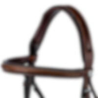Aachenträns med ljusa dekorsömmar på nosgrimma och pannband. Mjukt foder vid nosgrimma, nacke och pannband. Anatomiskt format nackstycke. Helt avtagbar aachenrem. Sidostycken med tygelhakar.