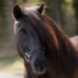 Islandsträns med remontnosgrimma. V-format pannband i utstansat mönster med knapp på båda sidor.