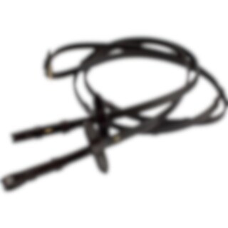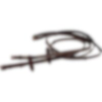 Tygel i vegetabiliskt garvat, europeiskt läder. Tygelhakar och stoppar.