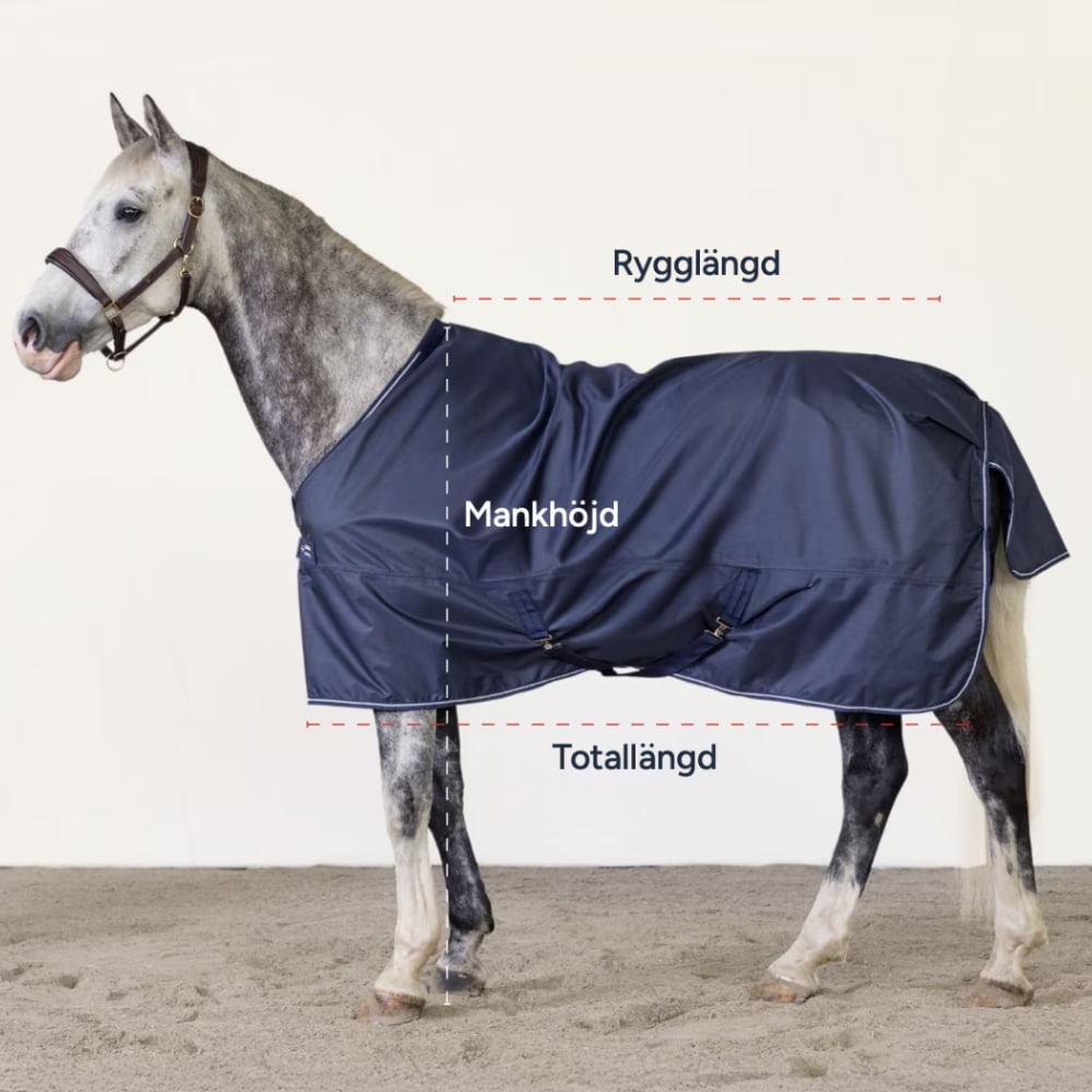 Tänk på att passformen kan variera mellan olika täcken beroende på modell och material. Storleken avser alltid hästens rygglängd – inte täckets.