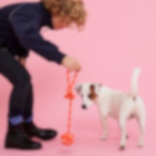 Tålig hundleksak i polyester/bomulls rep. Kraftig knuten boll med rep och handtag. Bra att kasta, apportera eller kampa med. Finns i fyra härliga sorterade färger. Totallängd 40cm.