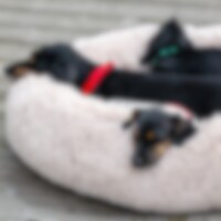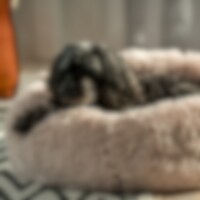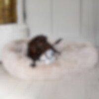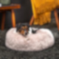 Mysig hundbädd i mjuk och fluffig pilé. Tjockt stoppad och med breda kanter. Avtagbar klädsel. S: 58 x 58 cm. M: 76 x 76 cm. L: 99 x 99 cm.