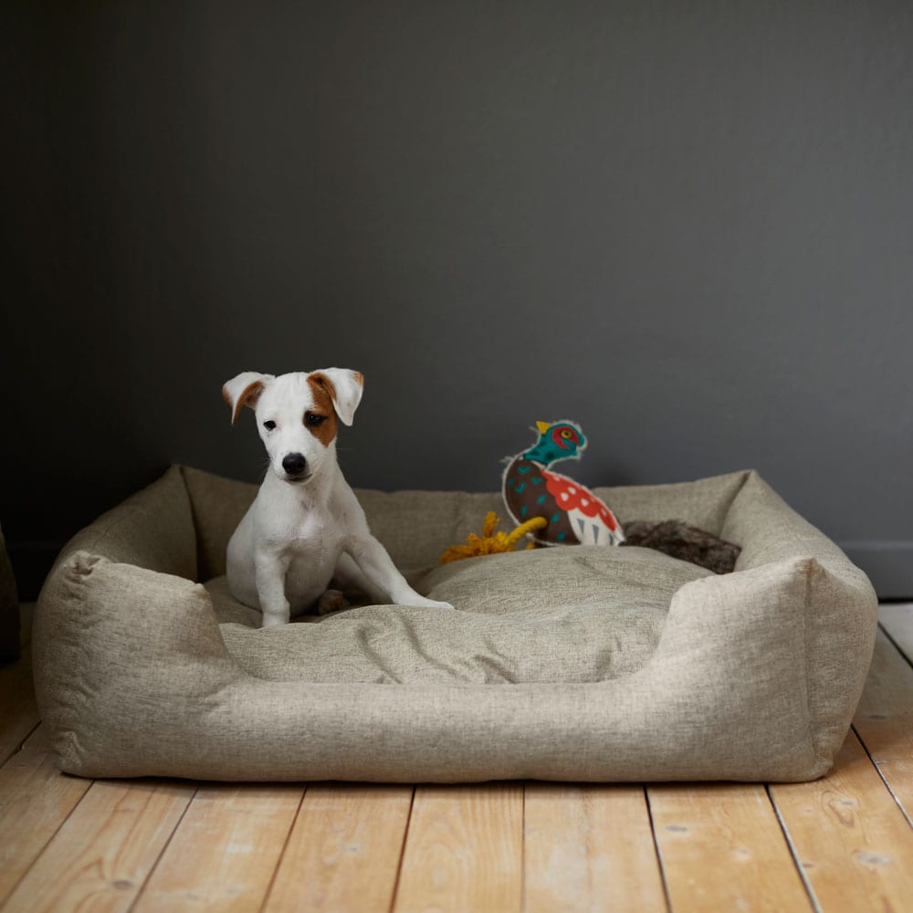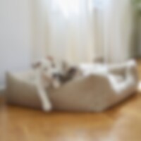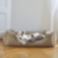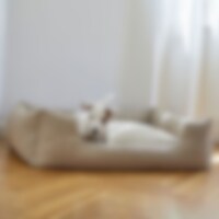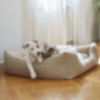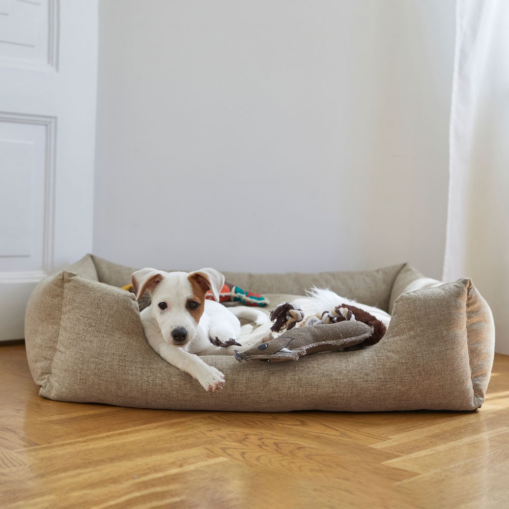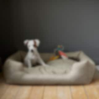 Hundsäng med linnestruktur, mjuka stoppade kanter och lös kudde, avtagbart överdrag gör att du enkelt kan tvätta och hålla bädden hygienisk. Storlek Large säljs endast i butik. S:60x50x17, M:70x60x19, L:80x70x21