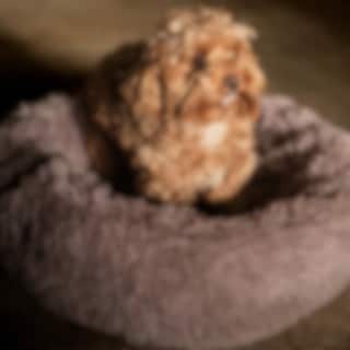 Mysig hundbädd med mjuk och långhårig polyesterplysch. Storlek S: Ø50 cm M: Ø70 cm L: Ø90 cm.
