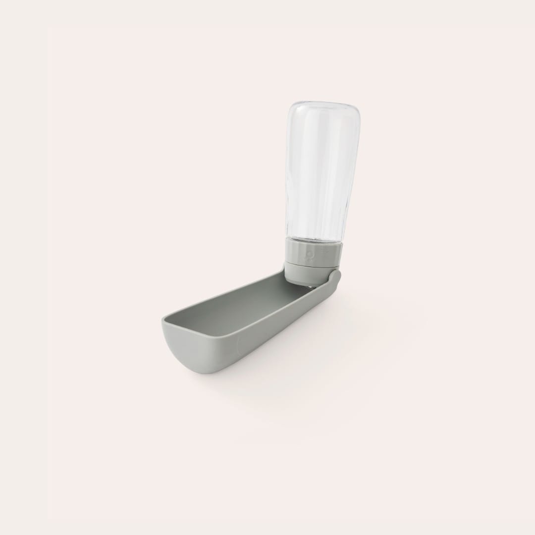 Vattenflaska med utfällbar skål. Praktisk att ha med på resan. 20 x 10 x 7 cm. 550 ml.