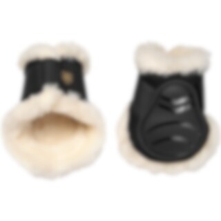 Bakbenskydd med skål i slagtålig plast, fodrade med äkta nyzeeländsk ull. Lammullen är stötdämpande, förhindrar skav, tryckutjämnande, ventilerande och fullt tvättbart i maskin på ullprogram. Höjd stl S: 15 cm, stl M: 16 cm.