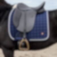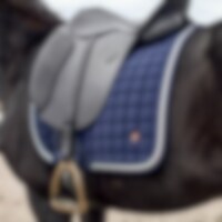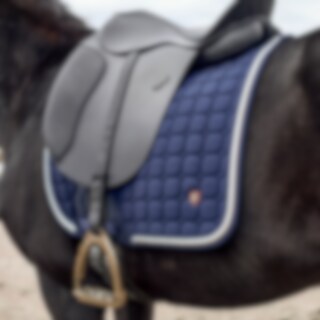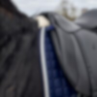 Quiltat schabrak med utsida i siltstark bomullstwill. Kraftig kombinationspadding i 300g polyfill + 1cm foam ger ett stadigt schabrak som håller formen och ligger på plats. Insida i 100% polyester funktionsmaterial som hjälper till att transportera bort fukt ifrån hästen. Teddyfodrat vid manken för att motverka skav samt panel i 3D mesh längst ryggraden för att ge ventilation. Extra förstärkt vid sadelgjorden för ökad slitstyrka och korta stroppar för fäste i sadelns d-ring gör att schabraket passar till de flesta sadlarna.