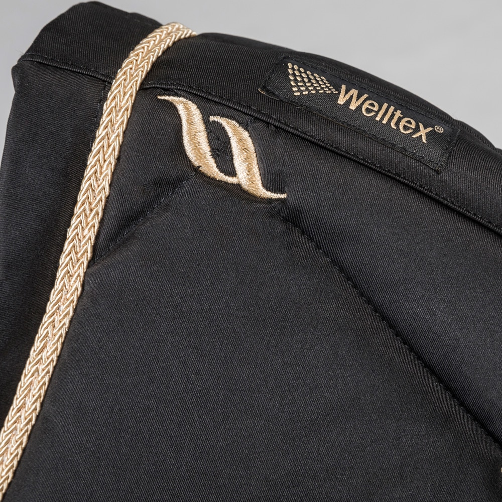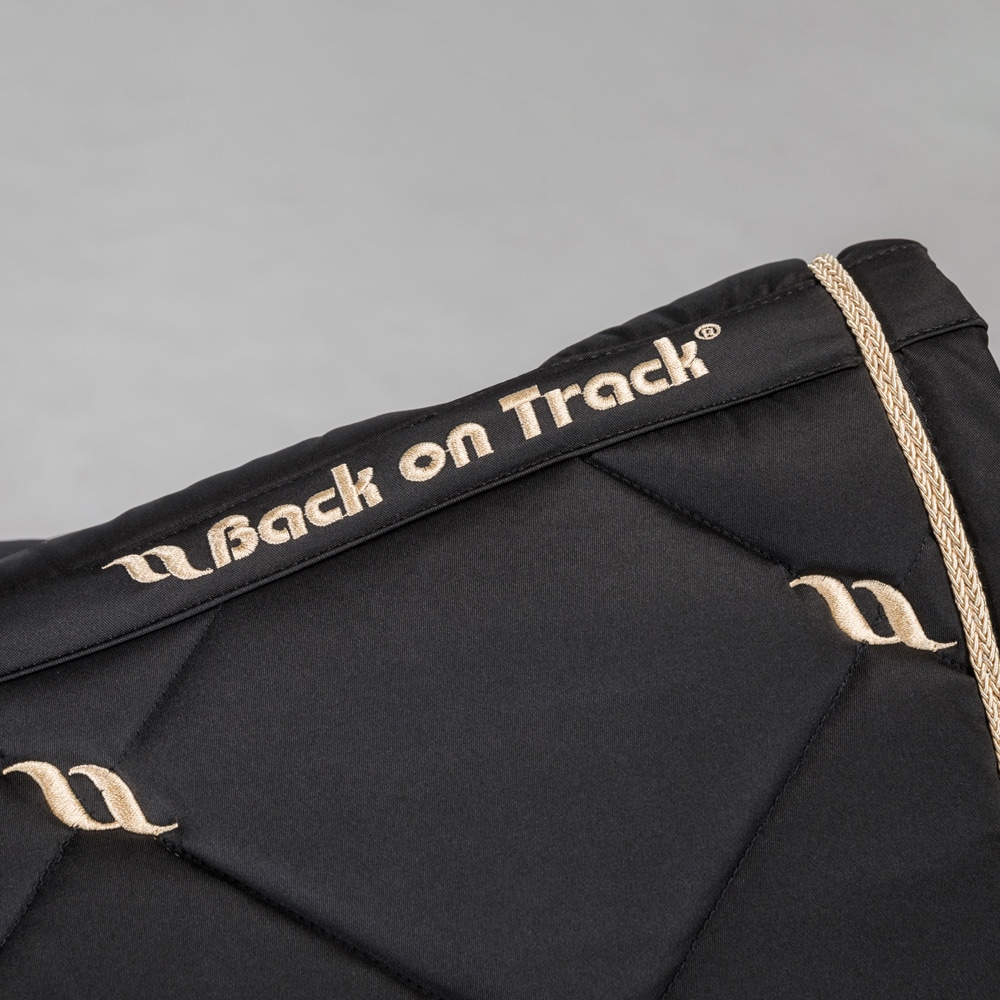 Schabrak från Back on Tracks Night Collection. Utsida i blank polyester och insida i våffelkvalitet med Welltex, Back on Tracks patenterade material. Welltex-materialet ökar blodcirkulationen och stimulerar hästens muskulatur. Detta i sin tur ger bättre rörlighet och motverkar stelhet i ryggen. Schabrakets form är rejält upphöjt över ryggrad och manke för att ge gott om utrymme och minska risken för tryck.