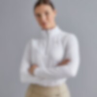 Långärmad funktionstopp i figurnära passform. Borstad insida som gör plagget mjukt och skönt att bära mot kroppen. Krage med dragkedjeöppning. Meshdetaljer med glitter på framsida axel och i dragkedjeöppningen vid kragen. JH logga prydd med strasstenar på bröstet.