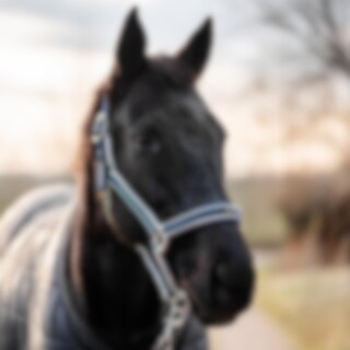 Grimma med brett format nackstycke. Neoprenefoder vid nos och nacke. Ställbar på båda sidor av nacke och under nosen.