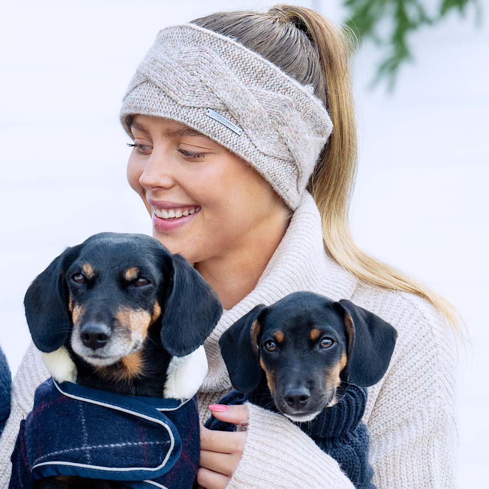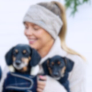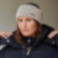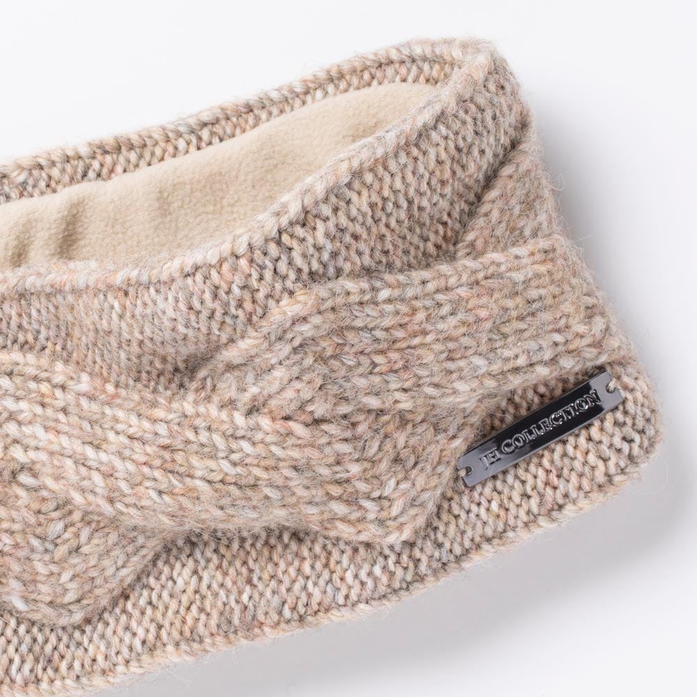 Värmande pannband med dekorativ kabelstickning. Insidan är fodrad med mjuk fleece.