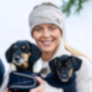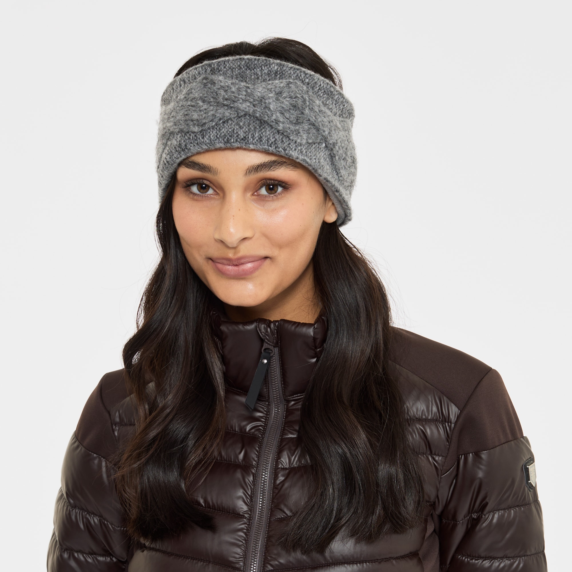 Värmande pannband med dekorativ kabelstickning. Insidan är fodrad med mjuk fleece.