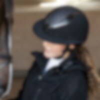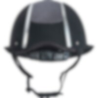 Ridhjälm med micromocca yta och dekorerad med glitter. Justerbar med skruv baktill så man kan finjustera passformen. Något bredare skärm för att skydda mot solljus eller starkt strålkastarljus. Avtagbart och tvättbart innerfoder.