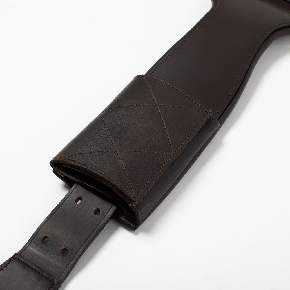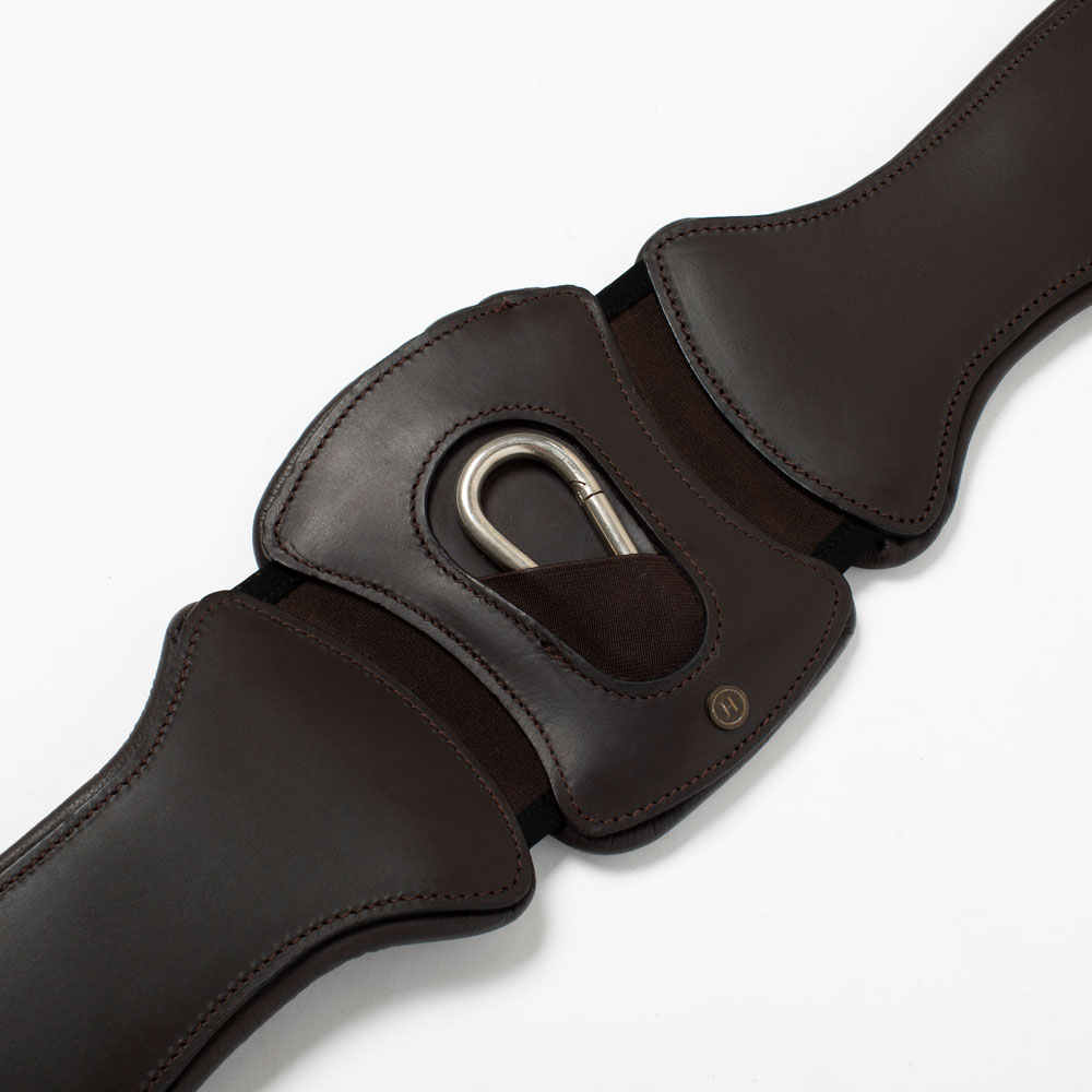 Lädergjord som är ställbar i båda sidorna så den går att justera mellan 115-145 cm. Tryckavlastande platta på mitten med resårpaneler och snabbknäppe. Mjukt foder.