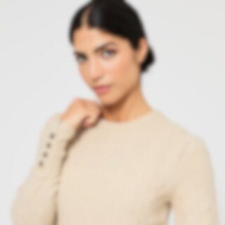 Klassisk kabelstickad tröja med rundhals i mjuk och skön kvalitet. Ribbad nederkant och ärmslut. Högre ärmslut med dekorativa knappar.