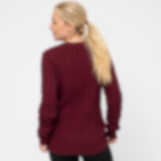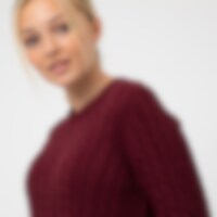 Klassisk kabelstickad tröja i mjuk bomullskvalitet. Rundhals och ribb i nederkant och ärmslut.