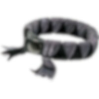 Armband i läder dekorerat med flätade sammetsband. Två tryckknappar för möjlighet av måttinställning. Mått: Knapp 1: 18,5 cm. Knapp 2: 20 cm.