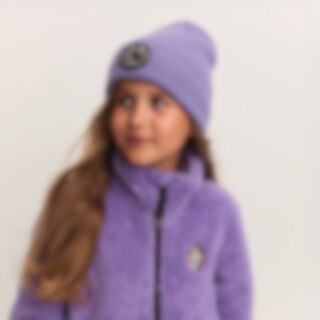 Värmande ribbstickad mössa i mjukt garn. Brett uppvik med dekorativt märke mitt fram.