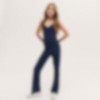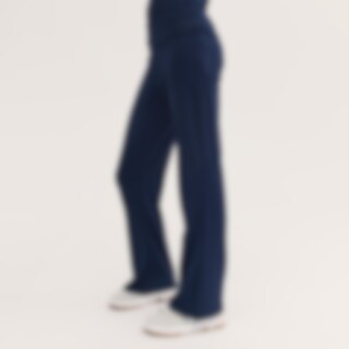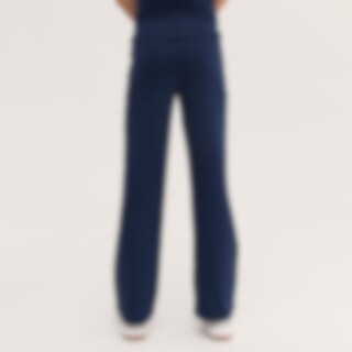 Yoga byxor i mjuk bomullstrikå med utsvängda benslut och brett vikt midjeband.