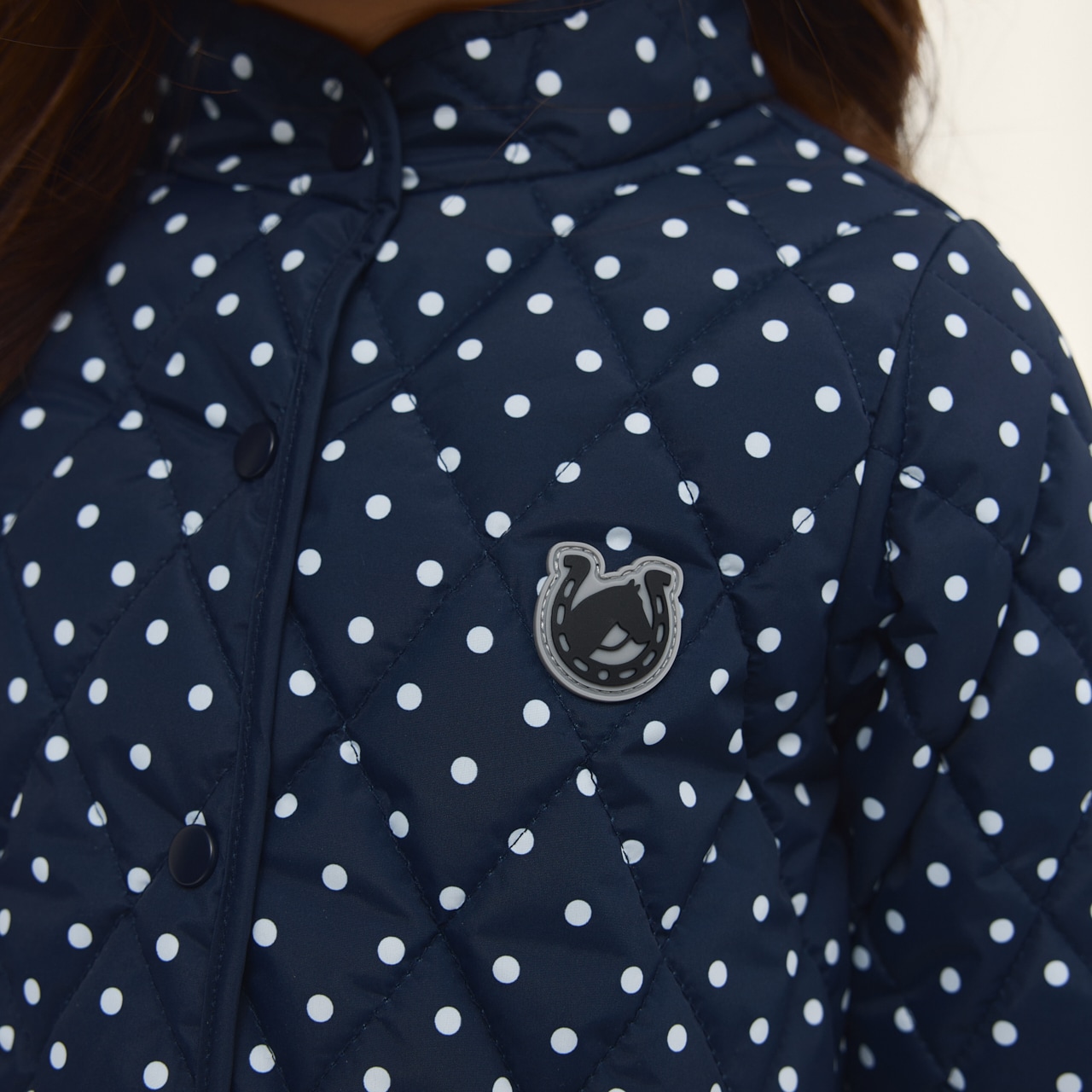 Quiltad vår/höst jacka i fint mönster. Knappslå med tryckknappar och två fickor fram.