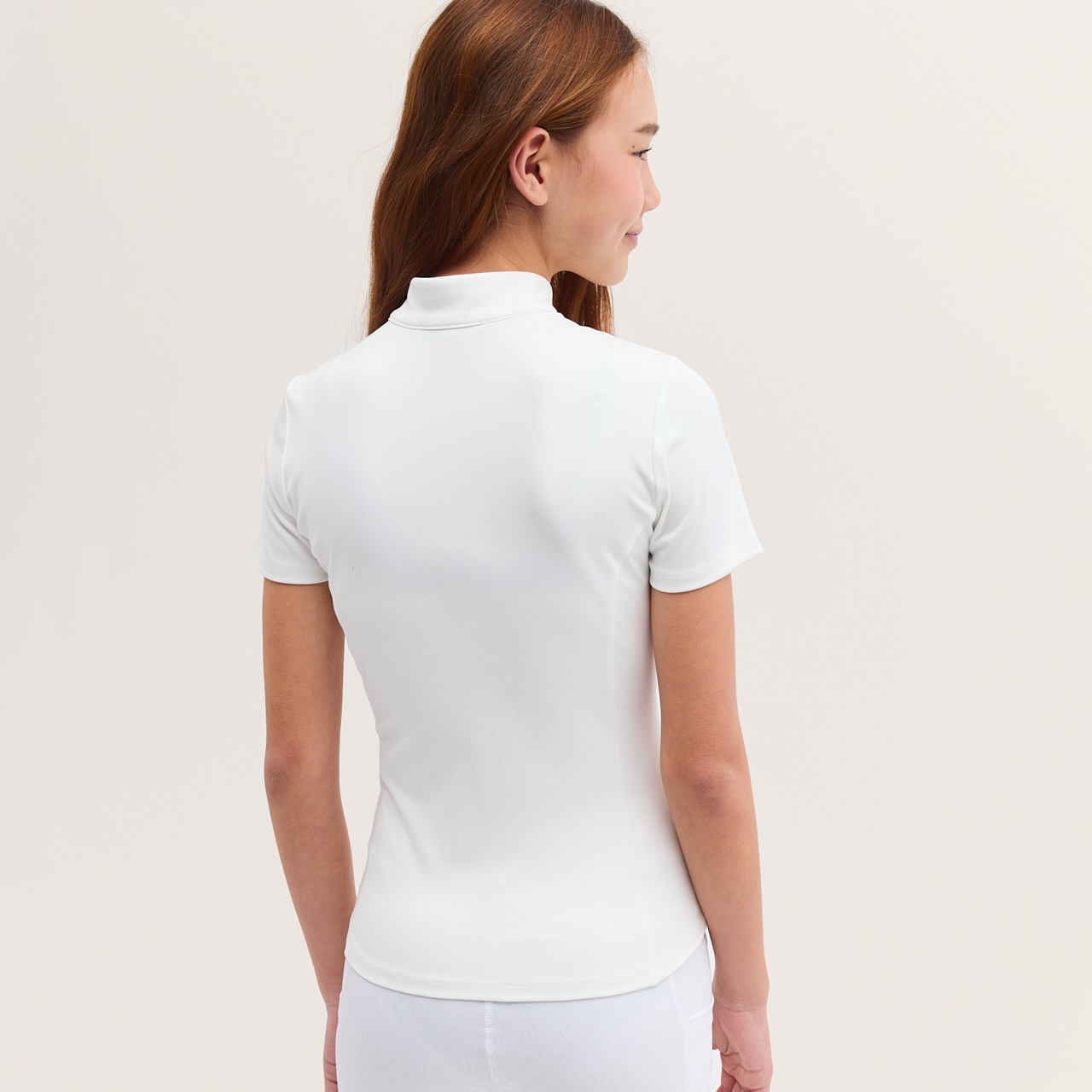 Kortärmad tävlingstopp i mjukt och stretchigt funktionsmaterial. Enkel och stilren design med dragkedjeöppning fram.