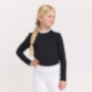 Långärmad funktionstopp med dekorativ brodyr och strass. Tillverkad i ett mjukt och stretchigt funktionsmaterial för bästa passform och rörelsefrihet. Dekorativt plisserad krage.
