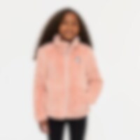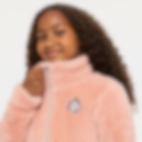 Tröja i mjuk fleece med hög krage, dragkedja fram och två öppna fickor. Hakskydd som gör att tröjan sitter bekvämt och inte skaver. Tröjan har glittertrådar och en broderad enhörning fram.