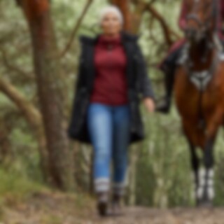 Ridbyxa i stretchig denim, helskodd med grip för bra grepp. 5-ficksjeans med kontrastfärgade sömmar. Beninnerlängd ca 70 cm i storlek 38.