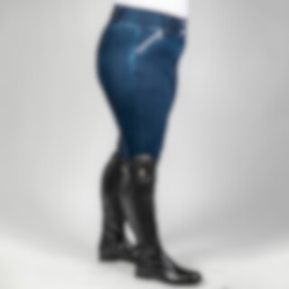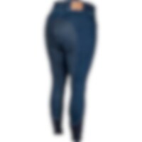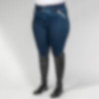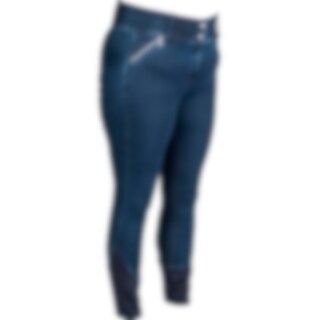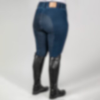 Vävd, stretchig denimridbyxa upp till storlek 54. Helskodd med grip för bästa grepp i sadeln. Hög, bred linning och elastiska benslut för bästa komfort. Dragkedjeförsedda fickor fram.