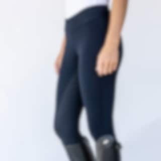 Ridleggings i stretchigt funktionsmaterial. Helskodd med PU. Bred linning. Dold myntficka.